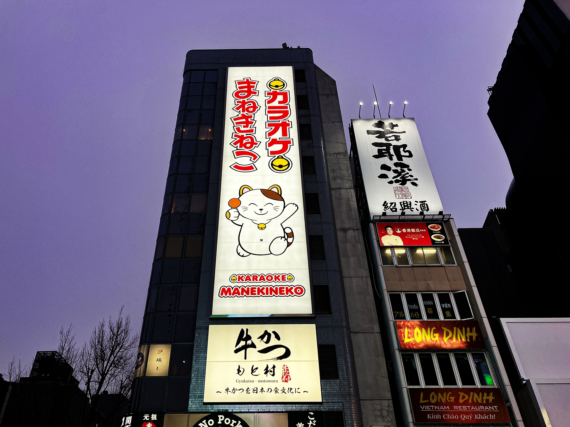 交通媒体・OOH関連 道頓堀グルカスビル(カラオケまねきねこ) #不燃商品 防火地域での不燃メディア必須にてバックリットGFⅡでの製作にて進行しました。 POINT デザインが白ベースにてツナギ部分の補強を特に慎重に進めました。 交通媒体・OOH関連一覧へ 次の実績へ